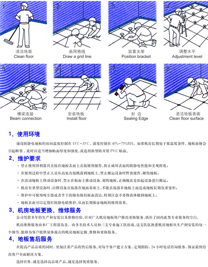 5、吸水膨脹率:鋁蜂窩防靜電地板不吸水不變形不腐蝕。全鋼防靜電地板易腐蝕。硫酸鈣防靜電地板易吸水易變形。木芯防靜電地板易吸水變形快。